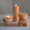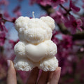 A handcrafted soy wax candle shaped like a teddy bear with a detailed rose texture and heart accent. Made with 100% vegan soy wax, this decorative candle is ideal for gifts on birthdays, baby showers, anniversaries, or Valentine’s Day. Packaged in an eco-friendly gift-ready wrap.