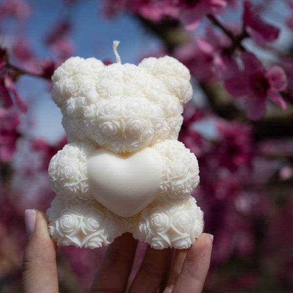 Rose Teddy Bear Candle with Heart – Handmade Soy Wax Gift for Her, Baby Shower, or Valentine's Day